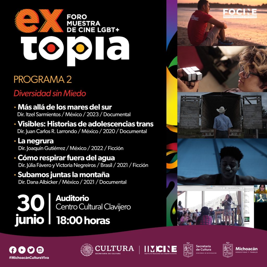 Como parte de las actividades de la dependencia estatal, por motivo del mes del Orgullo LGBTTTIQ+, llega la segunda edición de EXTOPIA, un espacio para la exhibición de narrativas audiovisuales de la comunidad diversa sexual que desafían las convenciones, propone historias insurrectas, y personajes que desbordan las normas de género.