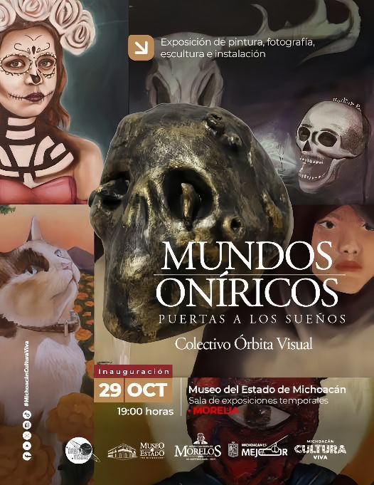 Las actividades inician este miércoles 29 de octubre a las 19:00 horas, con la inauguración de la exposición “Mundos oníricos. Puertas a los sueños”, del colectivo Órbita Visual. La muestra reúne obras de pintura, fotografía, escultura e instalación que invitan a recorrer los paisajes de la imaginación y los universos simbólicos del sueño.